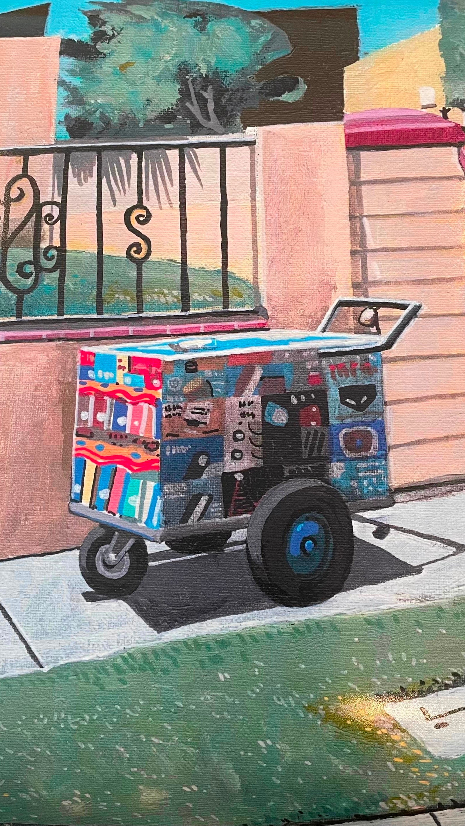 Romero’s painting might have inspired LA Times cartoonist Lalo Alcaraz, who offered prints of “Summer of Ice” as a tribute to all immigrants, but especially to Enrique the Paletero, an ice cream street vendor who was kidnapped by ICE in Culver City, California. On July 18, 2025, Lalo donated $2,000 towards Enrique’s defense thanks to folks who purchased the print.