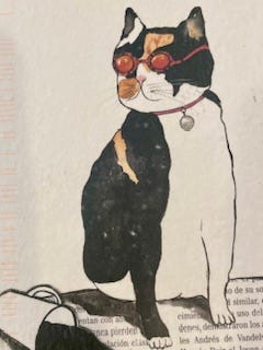 My friend, author, and playwright Kate Anger sent me the cat portrait in the mail, and it is now part of my Cats on the Mantle collection.