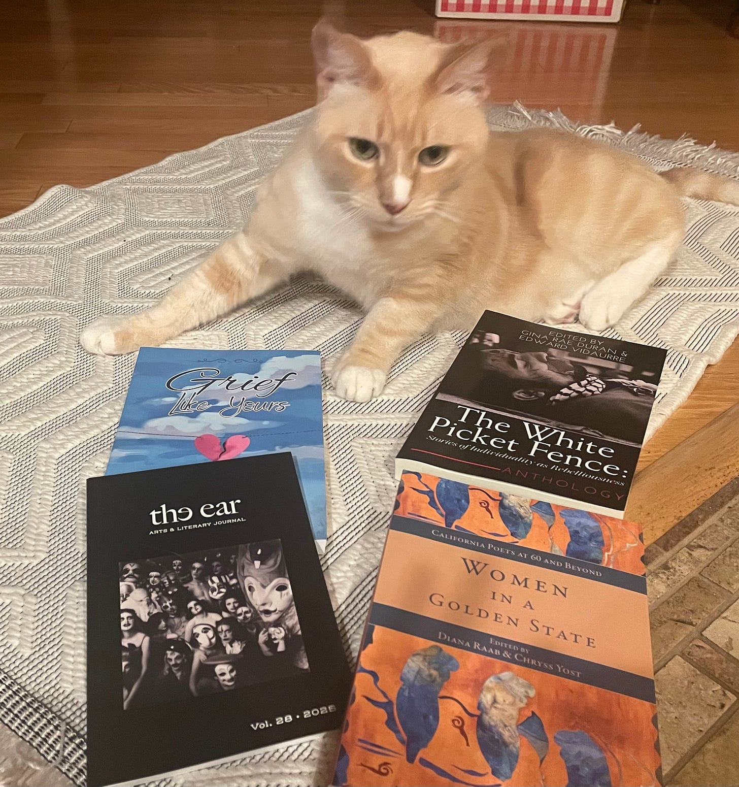 This has been a good year for me in getting my words out in print. Gracias to The Ear Magazine for including a poem of mine in Volume 28, to Cindy Eastman for including a short essay in Grief Like Yours, to Gunpowder Press for including a micro essay in Women in a Golden State, and to Gina Rae Duran and Flower Song Press for including a short story in The White Picket Fence.