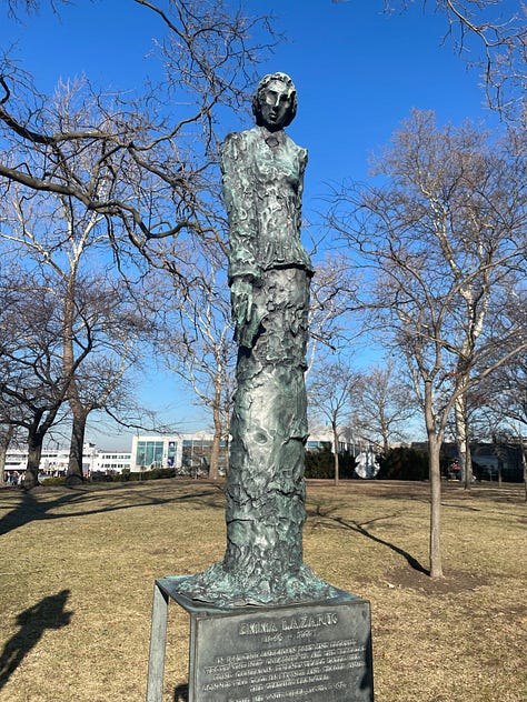 But reading the inscription on the statue left me in despair with how far away we’ve come from Emma Lazarus’s sonnet “The New Colossus,” written to raise money for the pedestal.